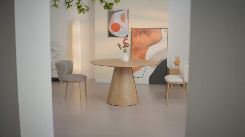 Con schienali ampi e dolcemente curvi e una lussuosa trama in tessuto di lino, le sedie Karin di OFCASA portano l'atmosfera di un hotel boutique direttamente a casa vostra.