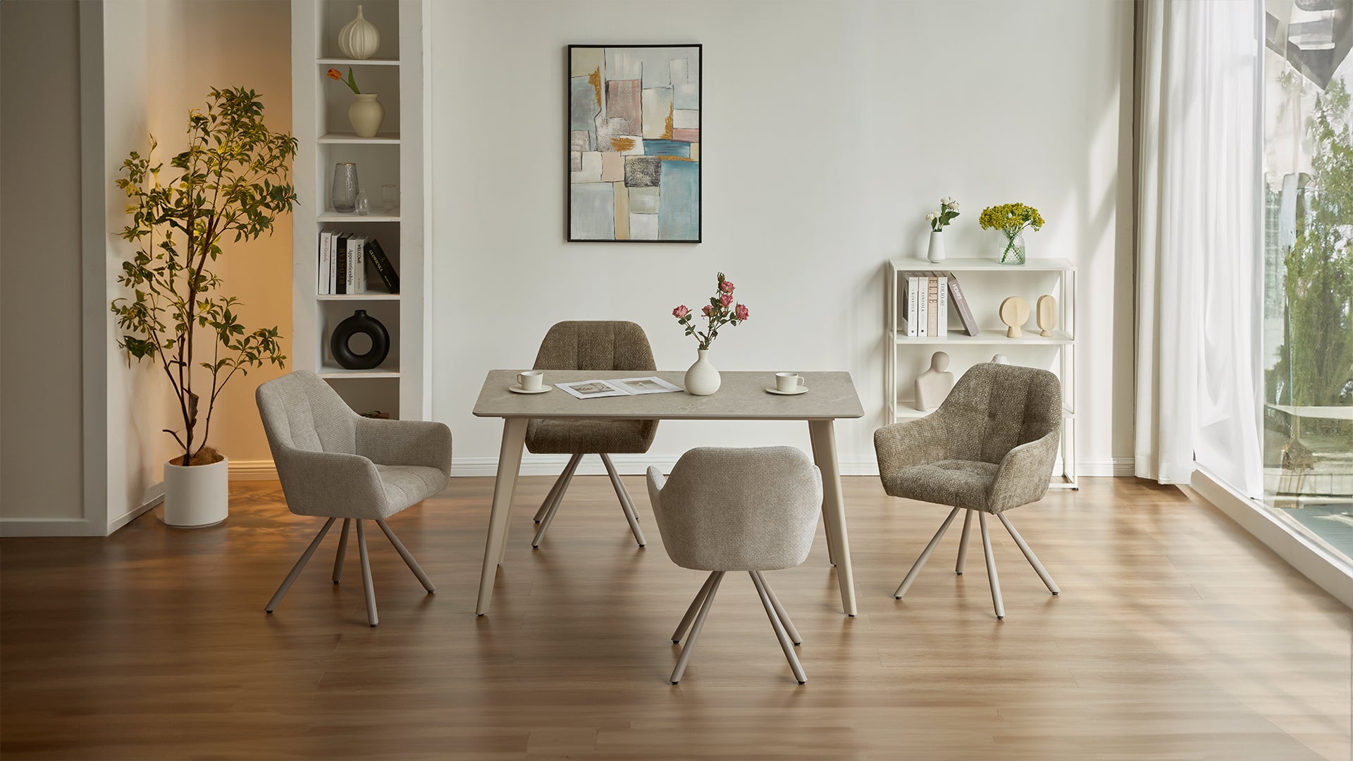 - 【Gambe in metallo stabili e facili da montare】Le sedie da pranzo hanno gambe in metallo colore chiaro dal design moderno e resistente. Le robuste gambe in metallo offrono un'eccellente stabilità e durata, garantendo la longevità delle sedie. Inoltre, le sedie sono progettate per essere facili da montare, consentendo ai clienti di sistemarsi con facilità. I cuscinetti antiscivolo regolabili sulle gambe inferiori proteggono i pavimenti da graffi e usura, per una maggiore sicurezza e protezione del pavimento.