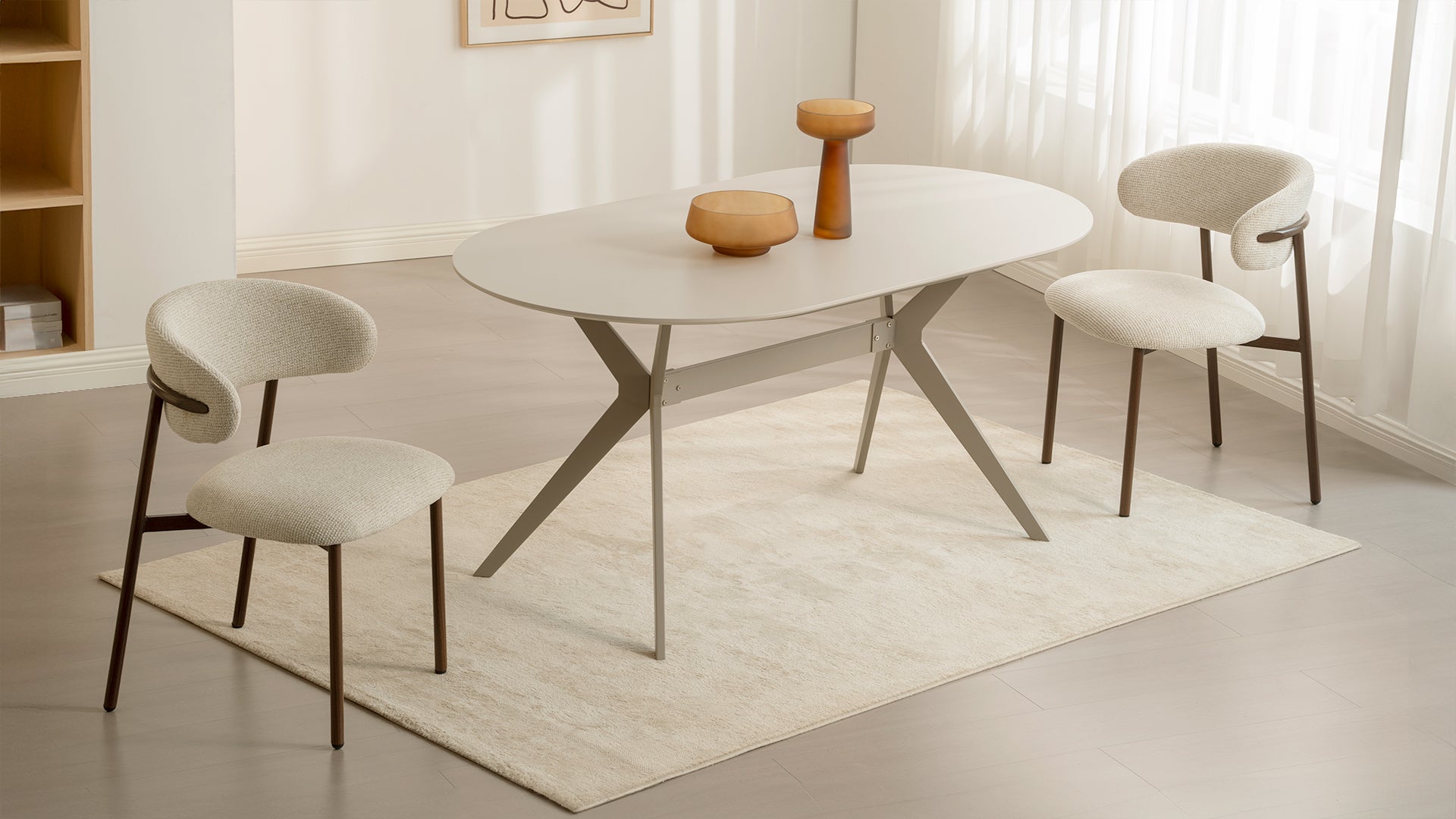 Ecco le sedie da pranzo Zahra S di OFCASA. Avvolte in un morbido tessuto di lino, queste sedie aggiungono un tocco confortevole a qualsiasi spazio, sia che si tratti di vestire un appartamento di città o di ravvivare un accogliente cottage. Le loro sedute e gli schienali dolcemente curvati offrono un sostegno in cui ci si può davvero adagiare, rendendo le cene in famiglia o le chiacchierate notturne ancora più rilassanti.