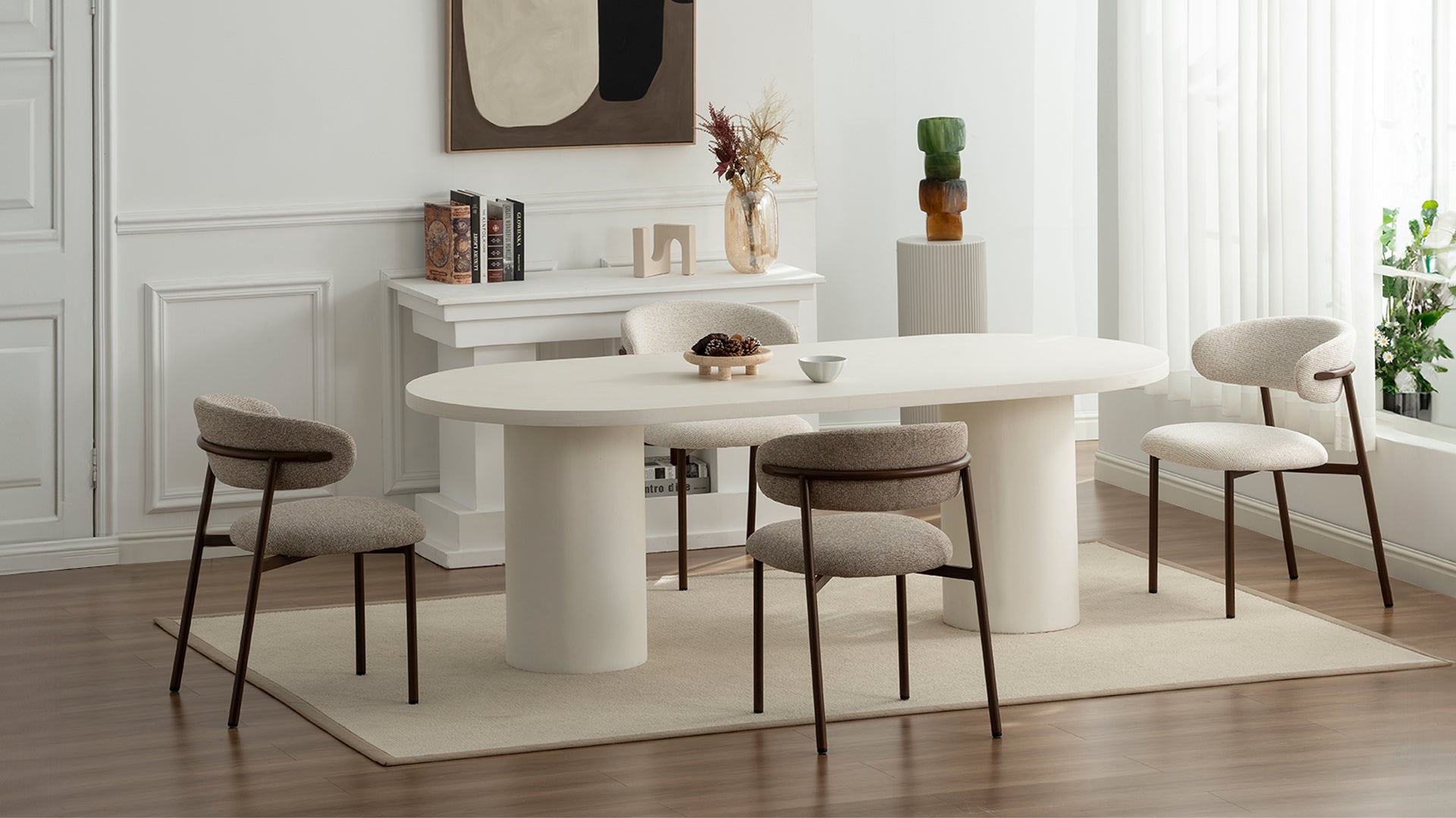 Cercate una sedia tanto accogliente quanto elegante? Avvolte in un morbido tessuto bouclé, queste sedie aggiungono un tocco di calore a qualsiasi interno, che sia un appartamento urbano o una casa di campagna.