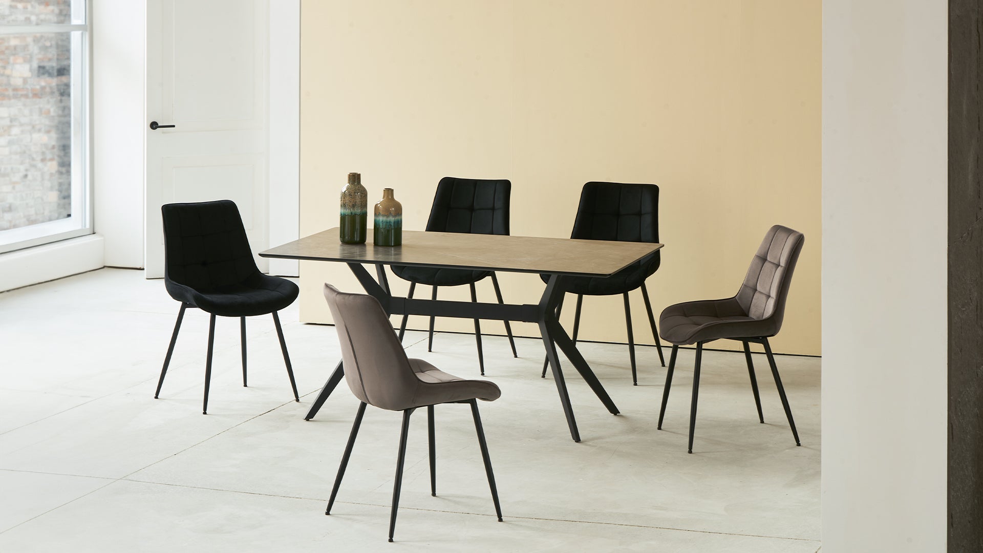 Abbina il tavolo Laila alle tue sedie da pranzo OFCASA preferite - in bouclé, velluto o ecopelle - per creare un look coordinato, oppure inserisci una Sgabello Bar OFCASA per posti aggiuntivi. La robusta struttura in metallo e i piedini anti-graffio garantiscono stabilità e proteggono i tuoi pavimenti, anche quando la conversazione - e le stoviglie - si fanno vivaci.