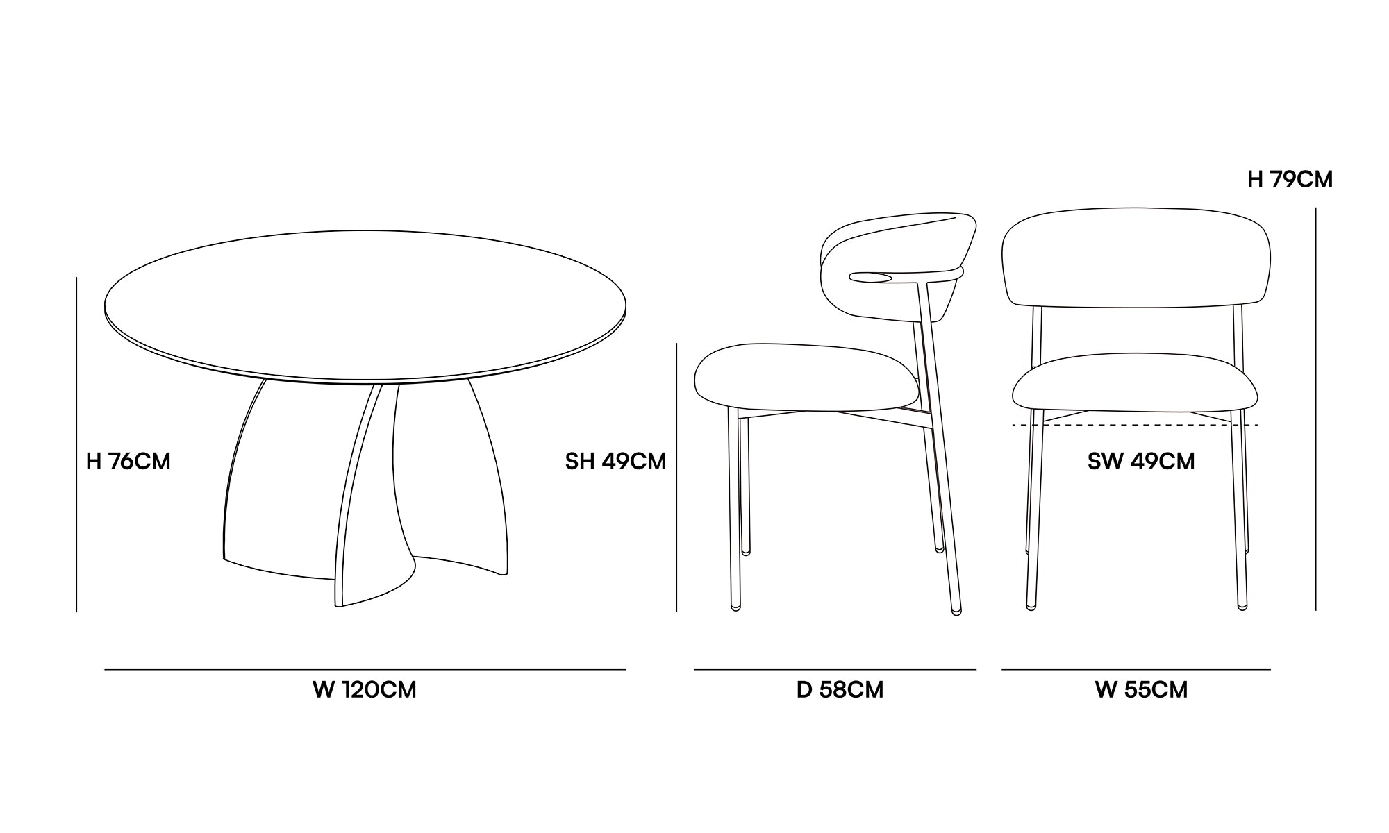 Il tavolo rotondo Gemma (diametro 120 cm) e il set di 4 sedie Zahra sono perfetti per aggiungere un'eleganza moderna al vostro ristorante.