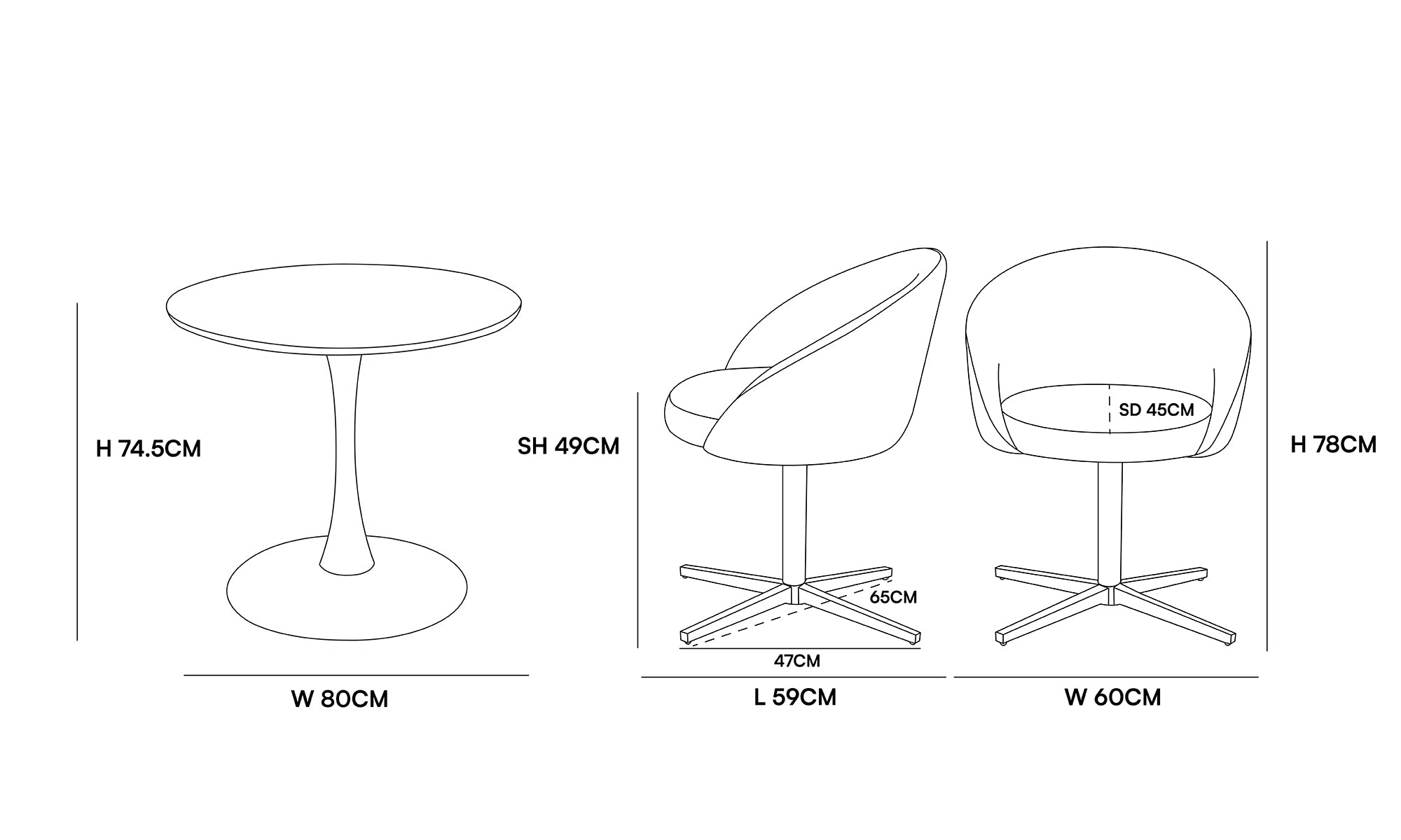 - Dimensioni: L60 x P59 x A78 cm